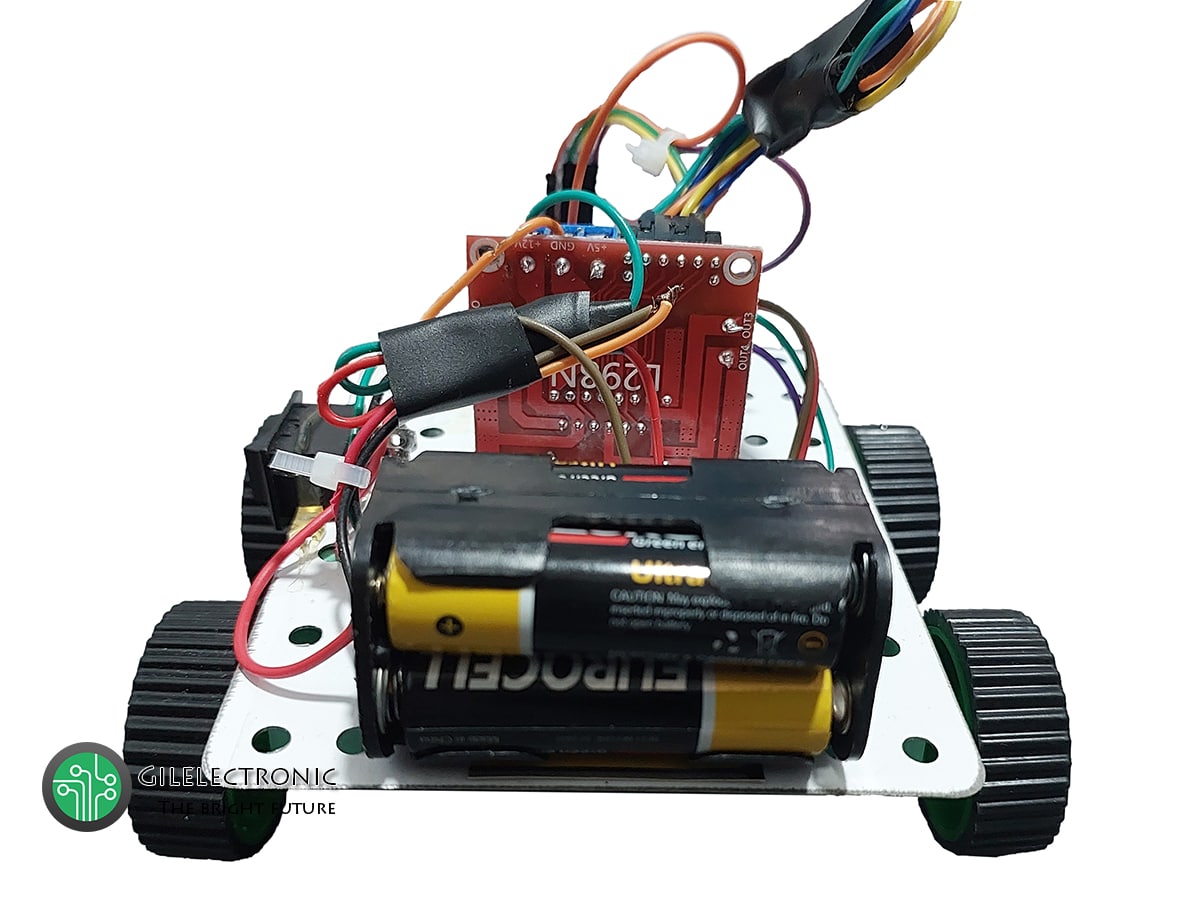 وجود دو موتور کم مصرف (برای حرکت به 4 جهت) و استفاده از باتری برای ازاد بودن ربات برای حرکت در فضای مورد نظر